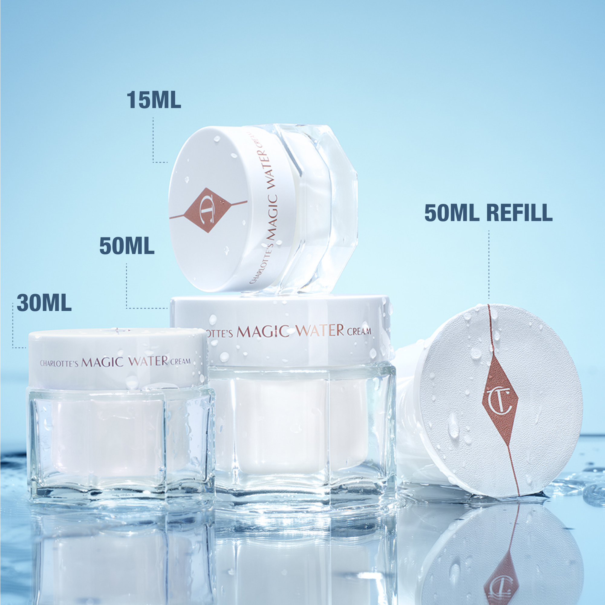 Darlings, your skin is thirsty! Drench your skin with 100-HOUR HYDRATION* with Charlotte’s Magic Water Cream, my immediate skin revival gel-cream moisturiser for a dewy, glass-like, fresh water glow!