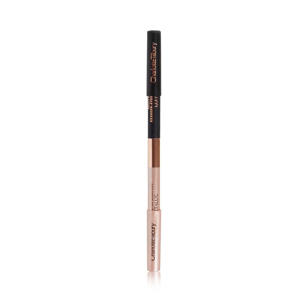 Mimicking the contrasting effects of bright and dark and light and shade, this black and champagne-nude eyeliner duo is my EYE GLOW FILTER that plays with the light to give you the look of wider, brighter eyes!