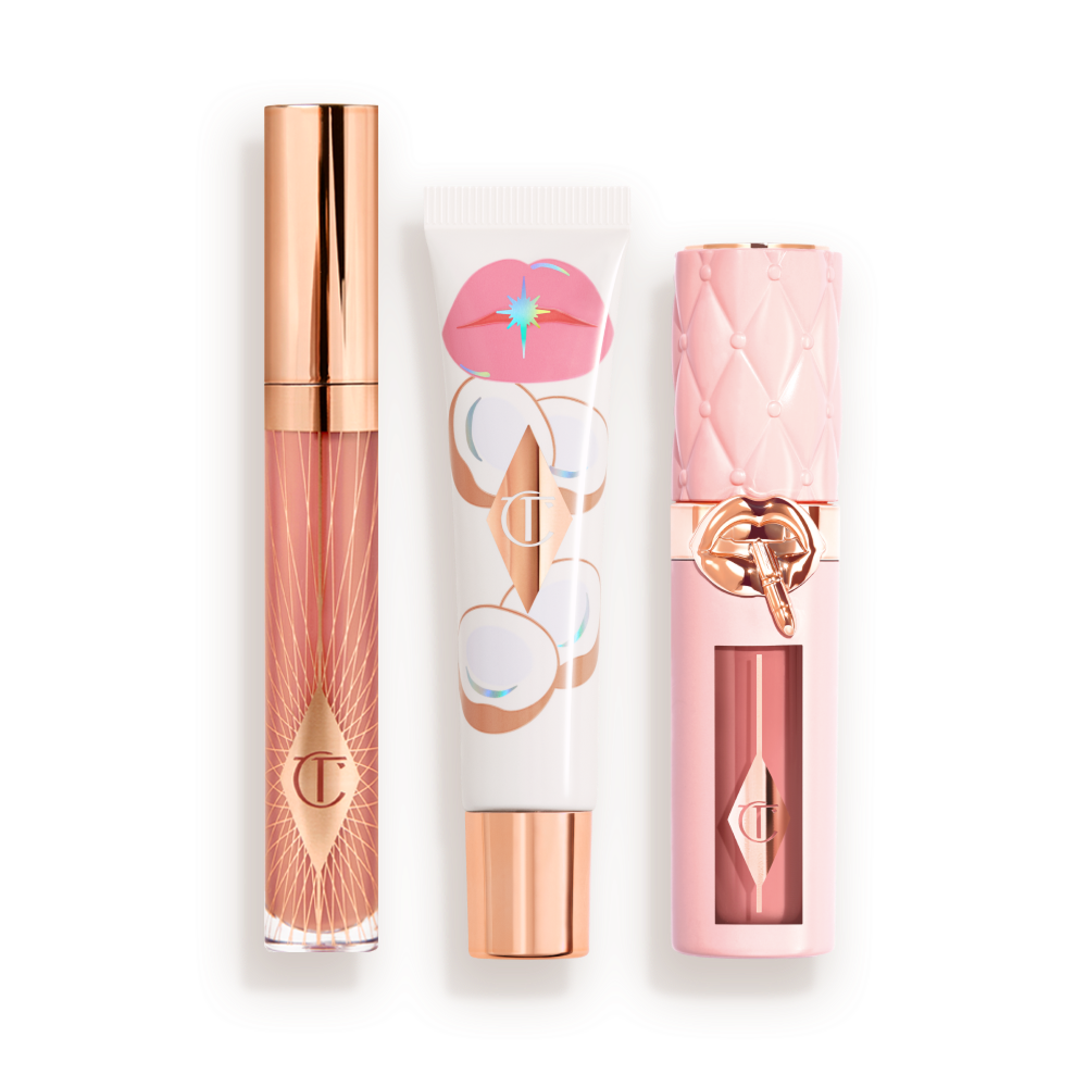 ONLY available on CharlotteTilbury.com and the App, my Jewel Lips lip kit includes my Unreal Lips Healthy Glow Nectar Oil, Collagen Lip Bath lip gloss and Pillow Talk Big Lip Plumpgasm plumping lip gloss in shades of your choice.