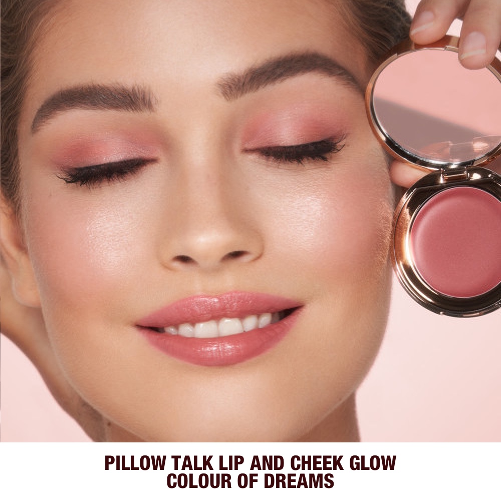 Pillow Talk Lip & Cheek Glow: My moisturizing lip and cheek tint inspired by the dreamy world of Pillow Talk! The cream formula delivers a semi-sheer kiss of color that looks effortlessly radiant. Choose between Colour of Dreams, a romantic rose, and Colour of Passion, a beautifying berry-pink, and create monochromatic makeup magic on the lips and cheeks!