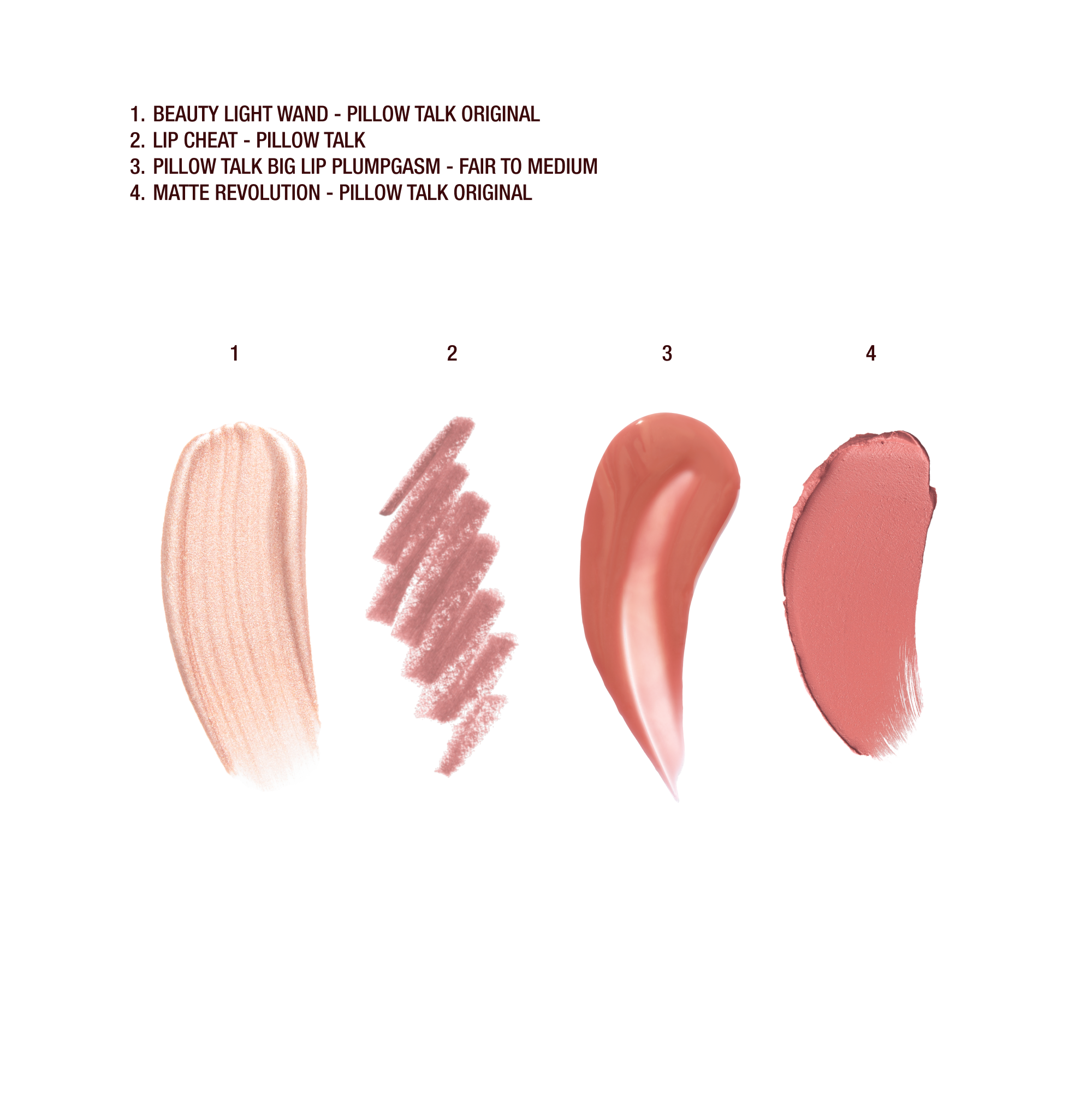 - Travel-Size Matte Revolution lipstick in Pillow Talk Original (1.5g): The iconic, globally-adored nude-pink matte lipstick that’s on everyone’s lips, in a magical mini tube for a sumptuous, kissable pout!