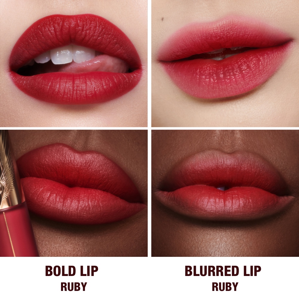 Ruby Blur is a cool-toned, ruby red shade. Wear it BLURRED for ‘just-bitten’ lips and BOLD for the perfect red carpet red!