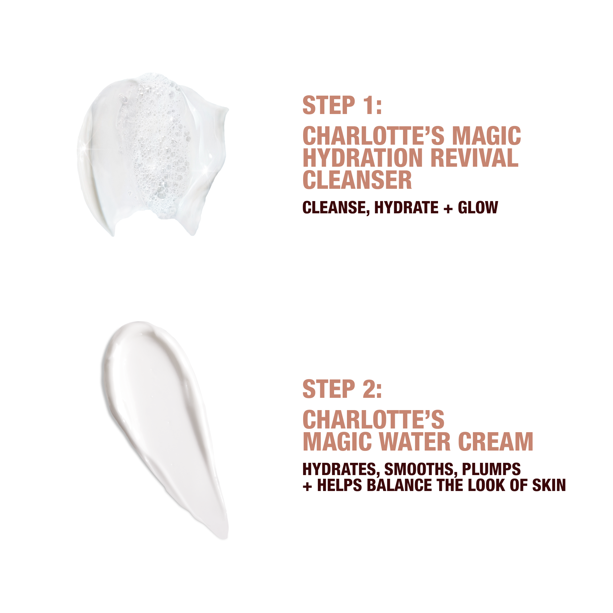 Darlings, revive your skin and unlock a FRESH WATER GLOW with my NEW! CHARLOTTE’S MAGIC HYDRATION REVIVAL DUO! My NEW! Charlotte’s Magic Hydration Revival Cleanser works in harmony with my IMMEDIATE SKIN REVIVAL gel-cream moisturiser, Charlotte’s Magic Water Cream, to unlock a fresh-looking complexion that’s drenched in hydration!