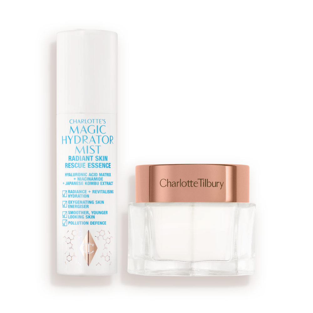 This IMMEDIATE SKIN REVIVAL duo combines the hydrating, radiance-boosting and skin-shielding benefits of my NEW! oxygenating Magic Hydrator Mist with the plumping, smoothing and brightening effects of my award-winning Charlotte’s Magic Cream moisturizer!